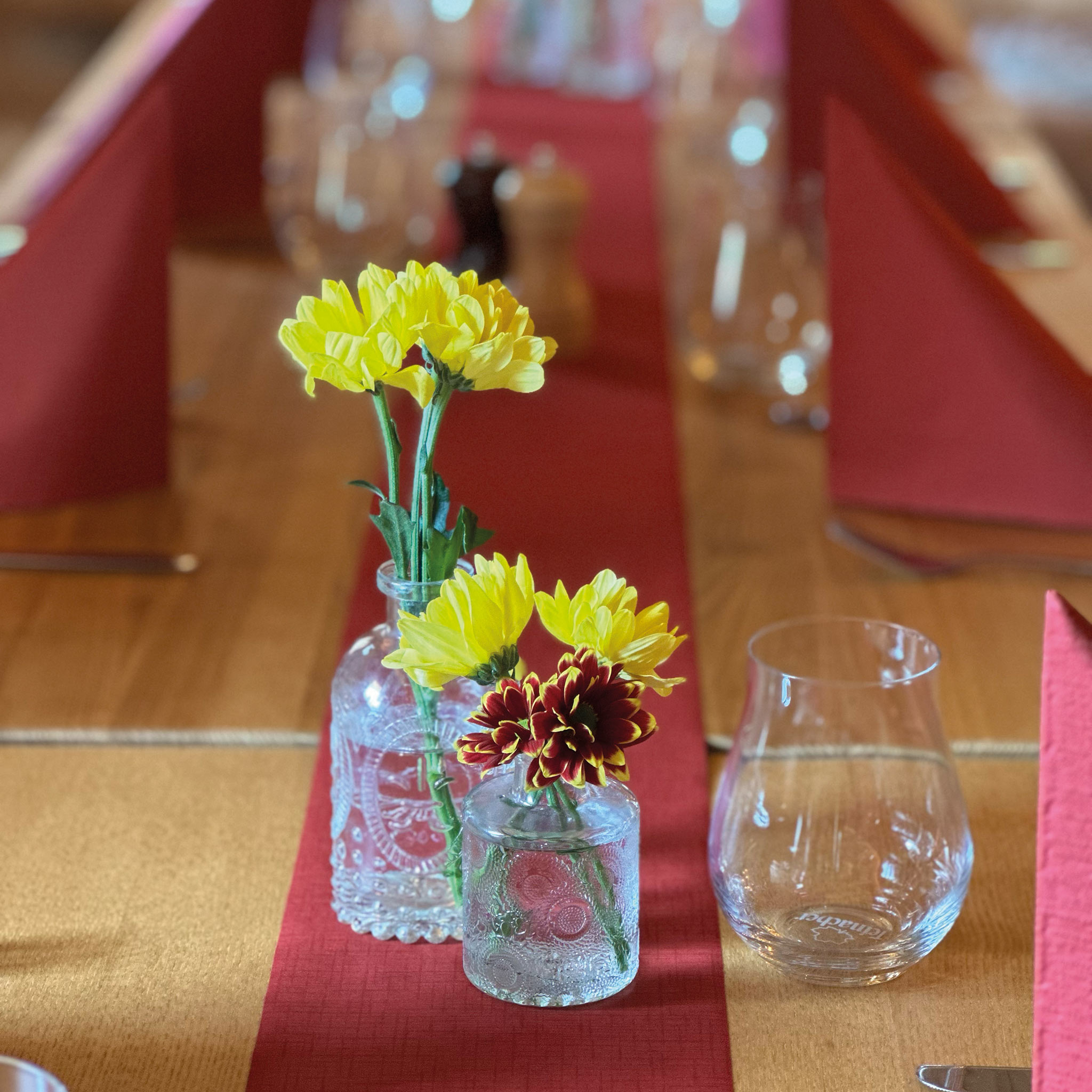 Die passenden Getränke gibt es à la Carte oder nach Absprache. Auf Sonderwünsche, z. B. Tischweine gehen wir natürlich gerne ein.